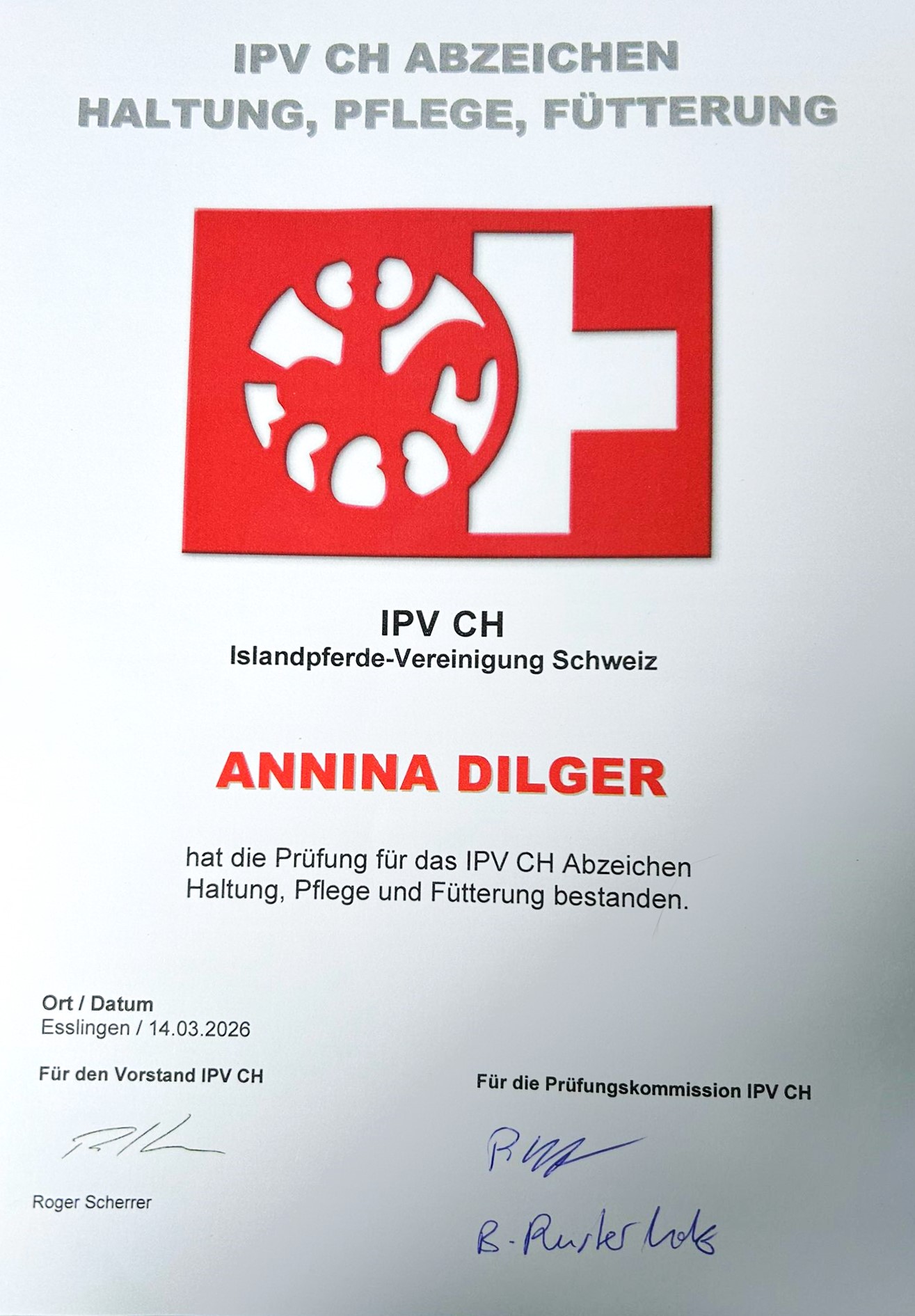 Wir gratulieren Annina ganz herzlich zum bestandenen IPVCH Abzeichen – Haltung, Pflege, Fütterung. Super gemacht, wir sind stolz auf dich.