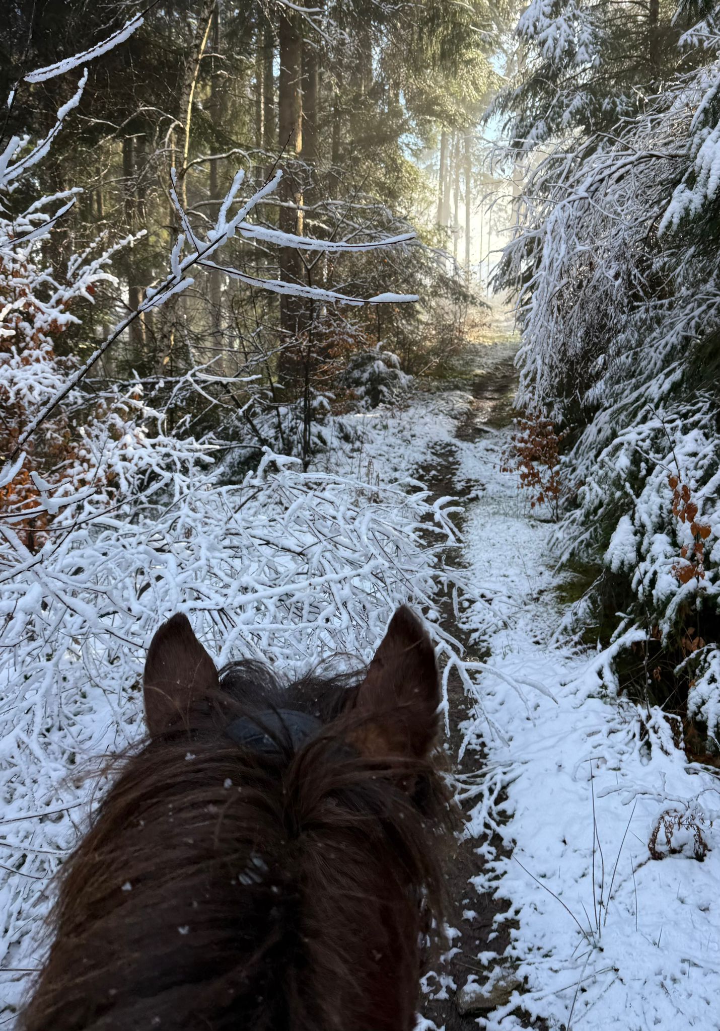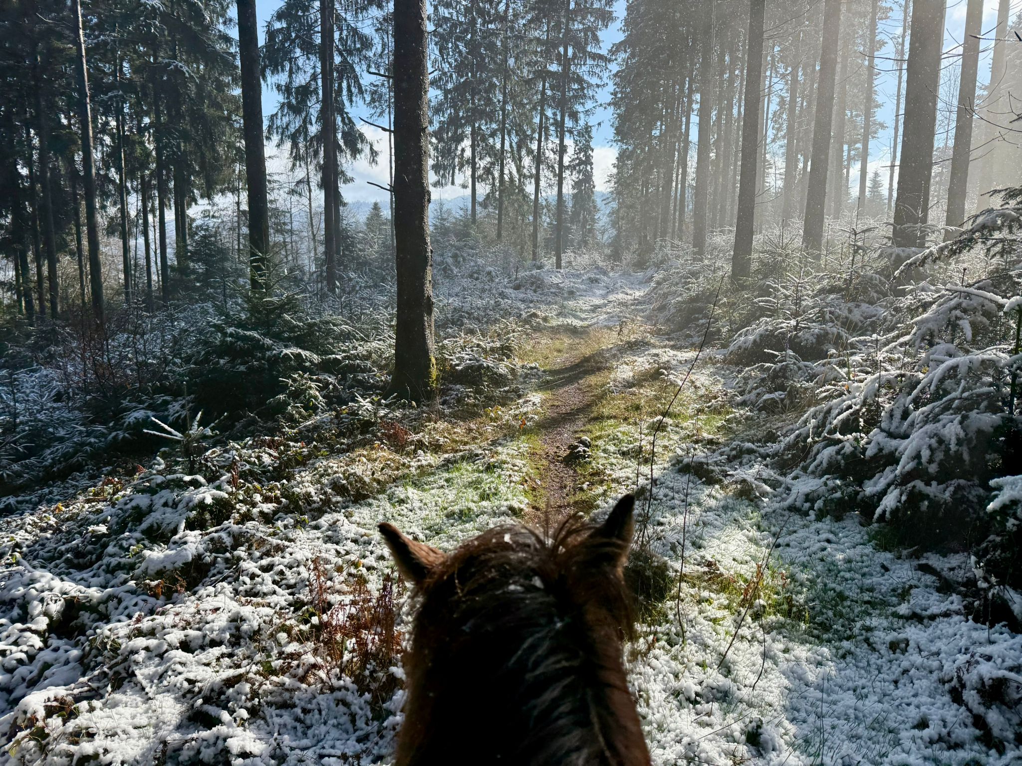 Zwar kein Schnee mehr aber noch immer winterliche Temperaturen und mystische Morgenstimmung. Das ideale Wetter für spritzige Ausritte mit topmotivierten Isis.