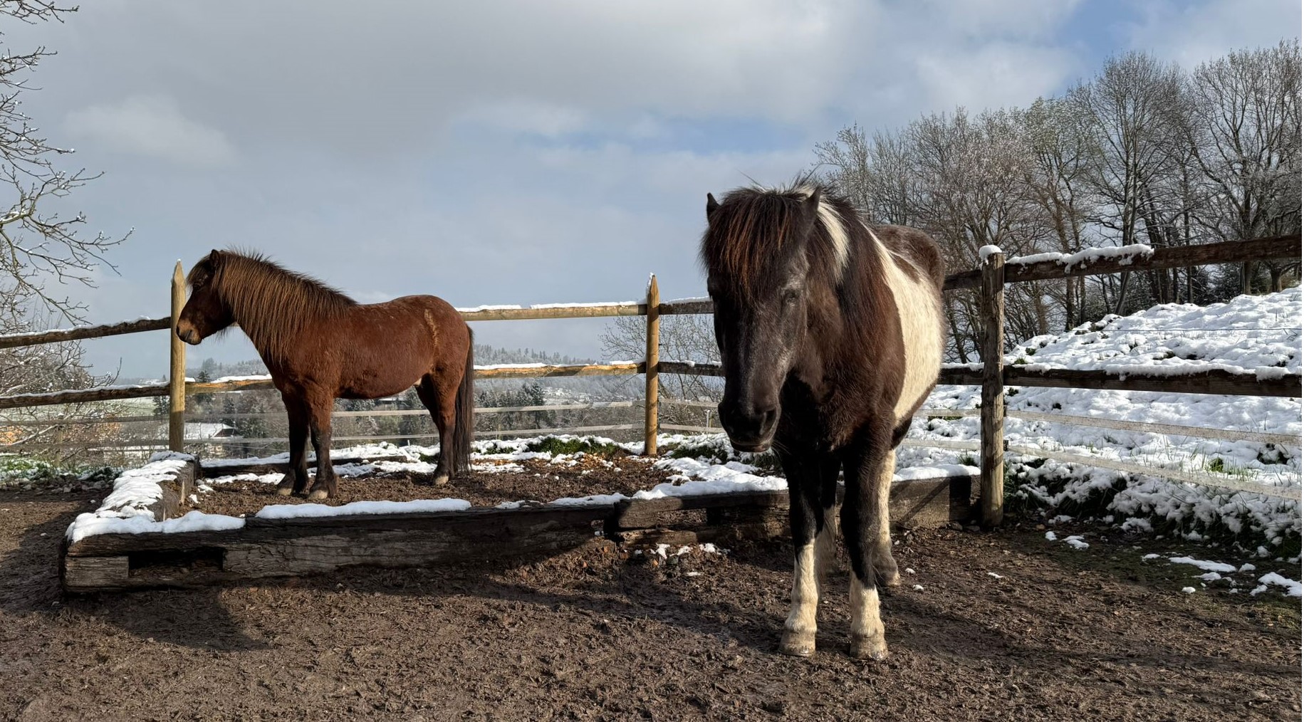 Erst grad noch wunderbares Herbstwetter und jetzt hat uns der Winter voll im Griff. Der erste Schnee wie jedes Jahr – des einen Freud, des andern Leid. Den Ponys gefällts! Ein paar Impressionen dazu gibts hier.